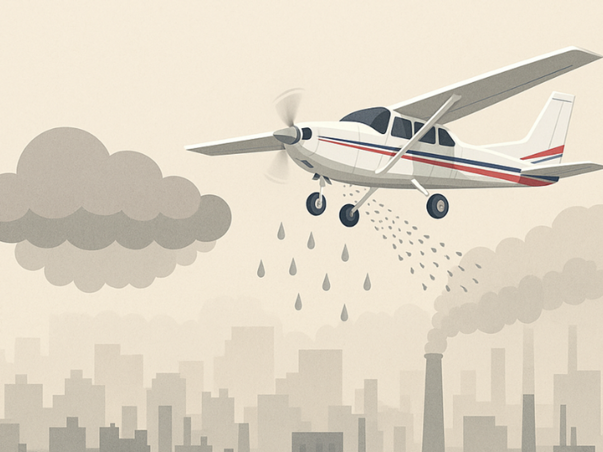 क्लाउड सीडिंग एक वैज्ञानिक तकनीक है जिसमें बादलों में विशेष रासायनिक कण (जैसे सिल्वर आयोडाइड या सोडियम क्लोराइड) छोड़े जाते हैं ताकि बारिश बनने की प्रक्रिया को प्रेरित किया जा सके।